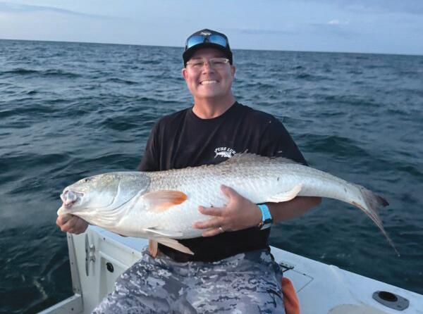 Above left, Mike Behney of Rick’s Bait & Tackle and Jeff Behney fished on board the private boat Lead Farmer and landed this big 88.5 pound wahoo at the Hot Dog. Above middle, I caught this 51ich red drum fishing the Chesapeake Bay with Captain CL Marshall of Tangier Sound Charters. Above right, Linda Stauffer of Mechanicsville, Pa. caught this 8.5-pound doormat flounder with Captain Dave Caffrey of On the Run Charters.