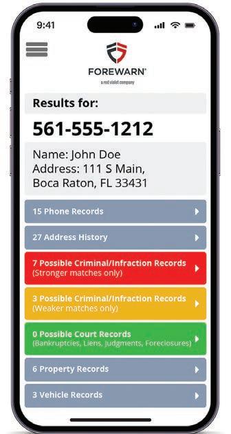 FRAUD: FOREWARN provides Realtors with tools to detect fraudulent activities early. By accessing comprehensive background information, Realtors can identify red flags as simple as fraudulent phone numbers through criminal activity.