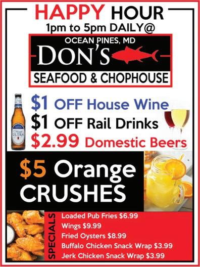 4 Ocean Pines PROGRESS December 2022 12741 Ocean Gateway Suite 890 West Ocean City In the OC Outlets Offering A Wide Array of Authentic Chinese, Japanese and Thai Food for Dine-In & Carry-out Order On-line www.occhopsticks.com OCCHOPSTICKS.COM • 410-801-1111 Friday & Saturday 11:30 a.m. - 10 p.m. Closed Tuesday OPEN 7 DAYS A WEEK! Sunday Thru Thursday 11:30 a.m. - 9 p.m. OPEN CHRISTMAS DAY AND NEW YEAR’S DAY