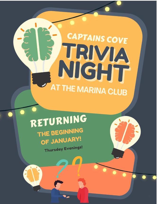 Phillips noted the launch of the new member Website with a calendar included, integrating “all areas of Captain’s Cove into one place. A new member online forum on the Website was intro duced.