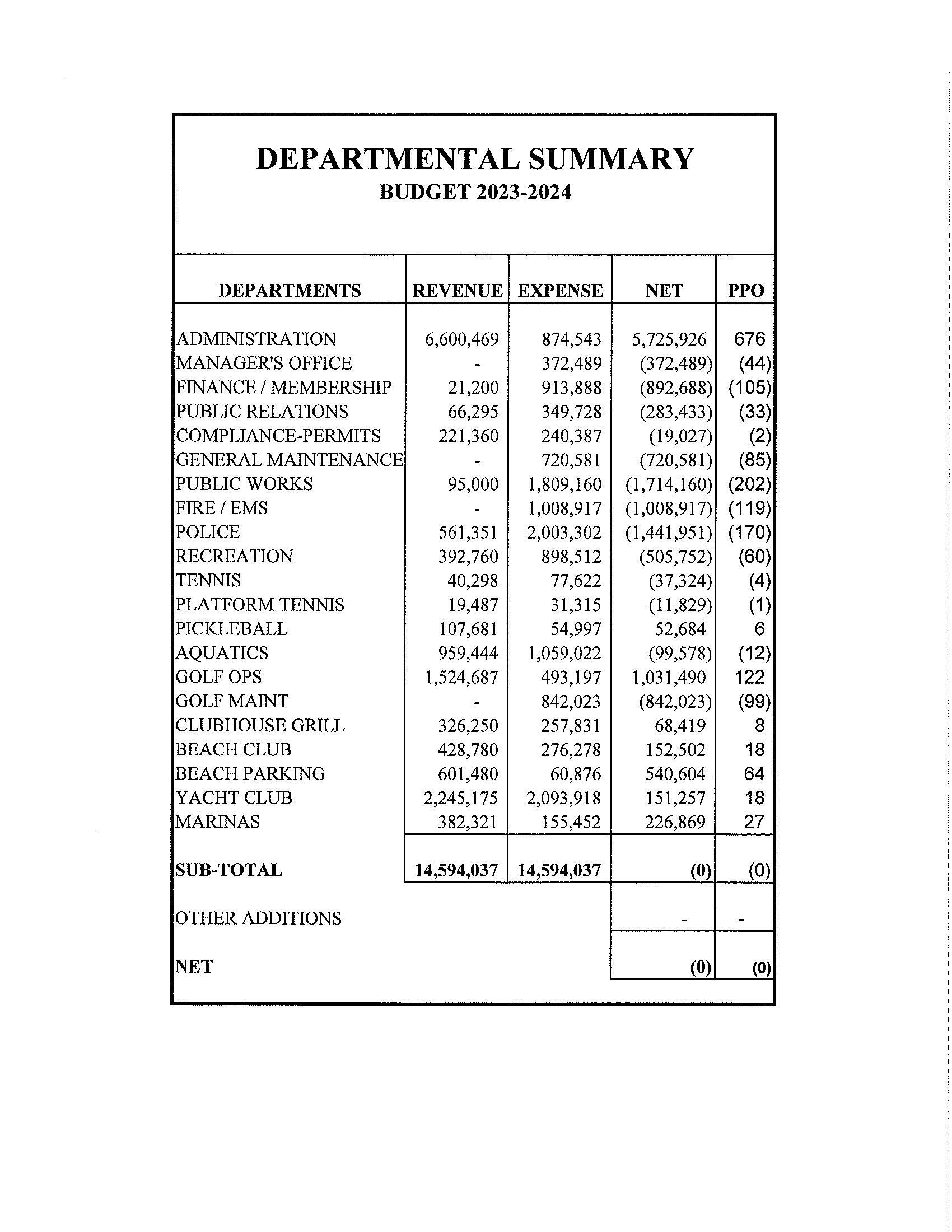 Already covered by the existing M0-02 resolution are the OPA dining facilities, parks, swimming pools, paths, Community Center, Beach Club and parking, Golf Course, and Skateboard Park.