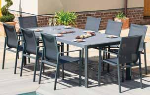 mantenimiento. A pesar de ser robusto, es un material muy ligero, haciéndolo portátil. El aluminio también absorbe el calor, por lo que las sillas serán más cómodas con cojines.