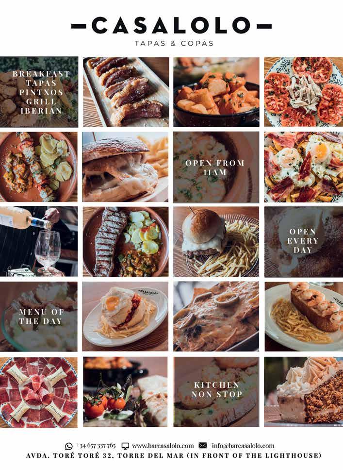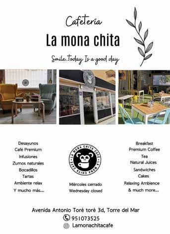 66 OCIO magazine Avenida Antonio Toré Toré, 9, Bajo M. Torre del Mar. 951 082 556 - 615 243 321 HORARIO: 13.00h - 16.00h y 18.00h - 00.00h (closed Tuesday - martes cerrado)