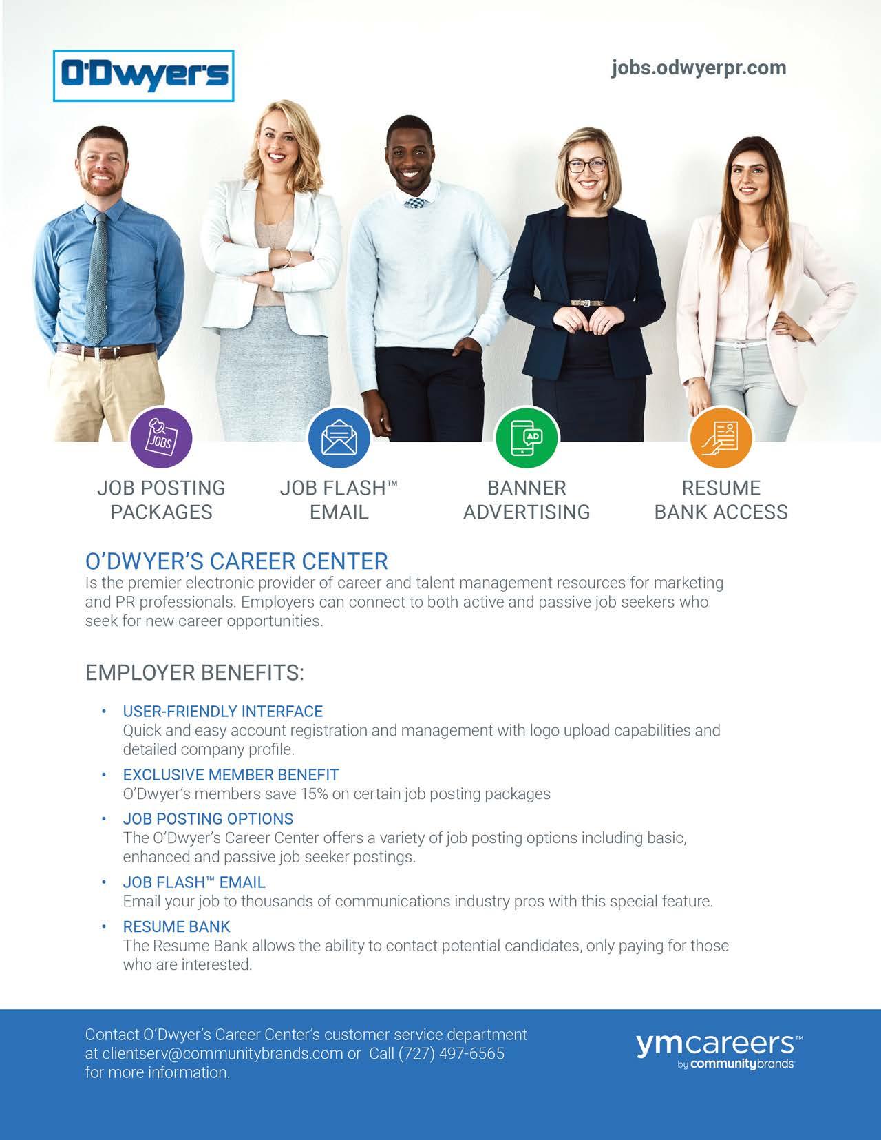 O’Dwyer’s online job center has help wanted ads and hosts resume postings.