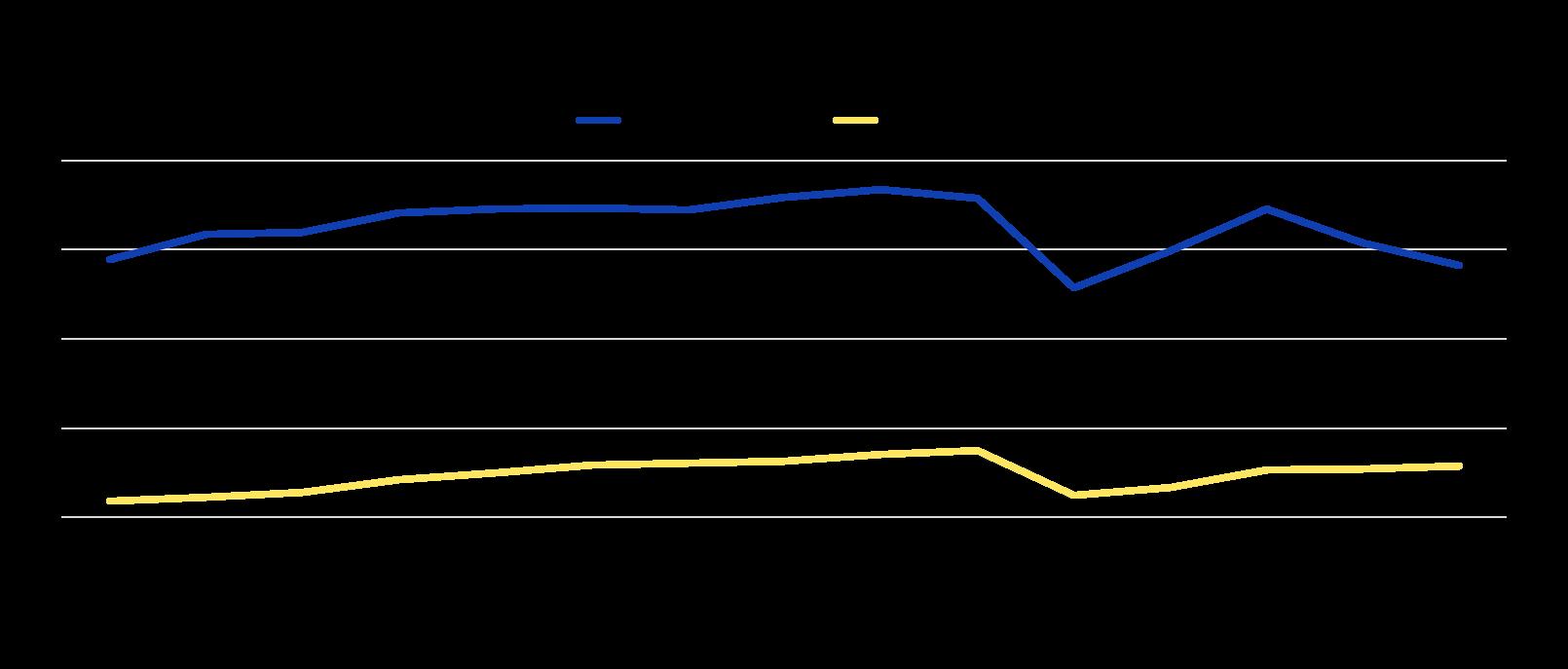 Note : Les données se rapportent aux pays de l’Union européenne et à ceux de la zone euro qui sont également membres de l’OCDE (soit 22 et 17 pays, respectivement).