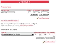 Nach der Eingabe von Setart und Anzahl, geht es mit einem Klick auf den Button >in den Warenkorb< sofort weiter. Ein Fenster erscheint und zeigt Preise und den Rechnungsbetrag. Die Bestellung wird danach per E-Mail sofort an WEARCHECK versandt und innerhalb von zwei bis drei Werktagen treffen die WEARCHECK-Analysensets beim Kunden ein.