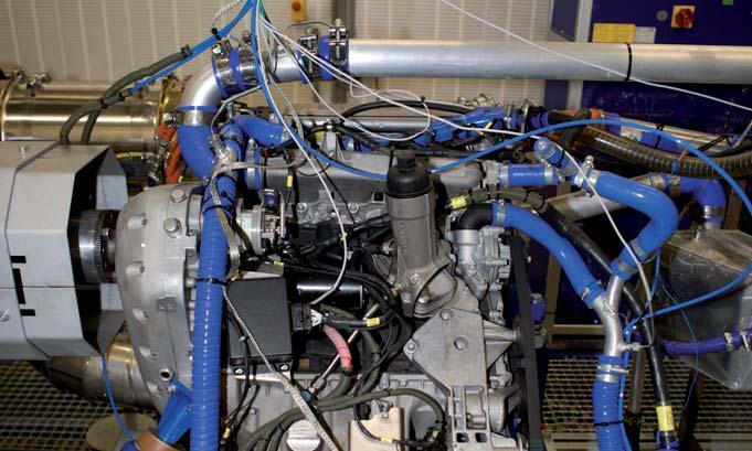 Die mit AvGas 100 LL (low lead) oder MoGas (Benzin mit 95 ROZ) betriebenen Drehkolbenmotoren werden mit einem vollsynthetischen ZweitaktMotorenöl betrieben. Eine Öldosierungspumpe fügt es dem Kraftstoff zu. In der Entwicklung be ndet sich bereits ein neuer leistungsstärkerer Motor, der wesentlich umweltfreundlicher und mit noch weniger 2-Takt-Öl arbeitet. Für die Schmierung des Hauptlagers wurde ein geschlossener Ölkreislauf konzipiert. Nur noch die Kolben und der Brennraum werden dann über die Öldosierungspumpe mit Schmierstoff versorgt.