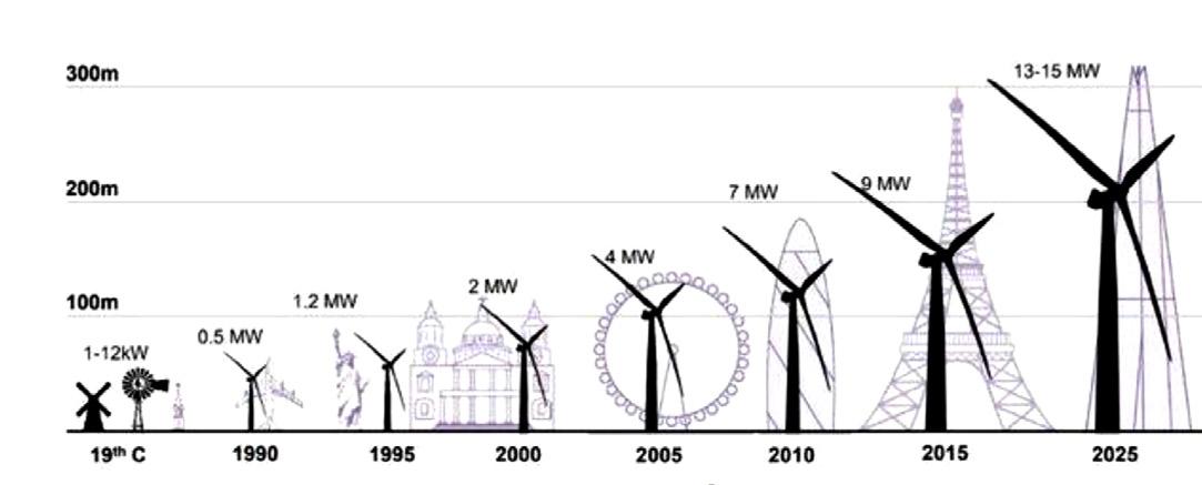 ordering more specialised units, with a prime focus on either foundation or turbine installation. This specialisation will continue, driven by the projected increase in foundation weight and turbine height. One of the consequences of this development is that many of the existing WTIVs will become obsolete much earlier than expected, as they cannot meet the lift requirements for the next generations of turbines. Upgrading of crane capacity is an option for younger vessels, thus buying a life extension - at a substantial cost. Many jack-up vessels - especially the older ones - are being side-tracked, and condemned to less rewarding repair & maintenance work in the existing wind farms with smaller turbines.