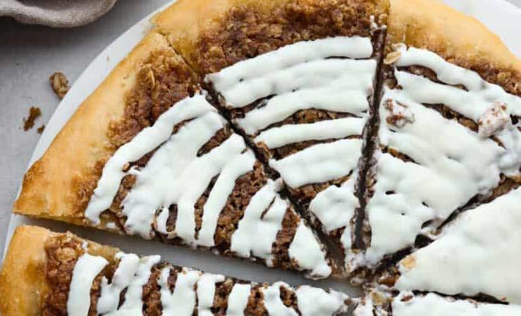 In a small bowl combine butter, brown sugar, oats, and cinnamon. Spread thinly on top of the pizza crust. Sprinkle with additional brown sugar if desired. Bake for 12-15 minutes or until the edges are light brown.