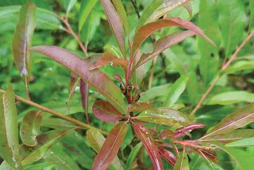 Willow oak is in the red oak group having one bristle at the very tip of the leaf (ID feature #1 that it isn’t a willow). ID feature #2... it has acorns! Willow oak acorns are small (½ inch max) with very shallow, saucer like cups. Native to more southern reaches of the Eastern U.S., willow oak is now cultivated up to zone 5, making it just fine for us here in Ohio. USDA reports full hardiness to negative 20 degrees Fahrenheit. continued on page 26
