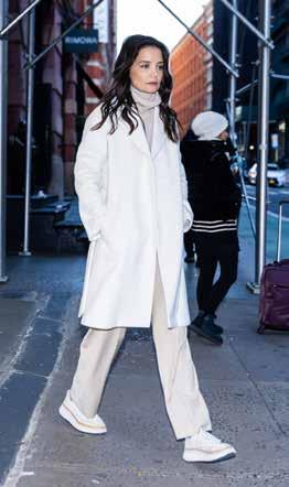 6. Monochromatic looks exult sophistication. Katie Holmes opted for soft tones from head to toe and comfy pieces to run her errands. The long winter coat is a welcome addition, giving an extra touch of elegance.