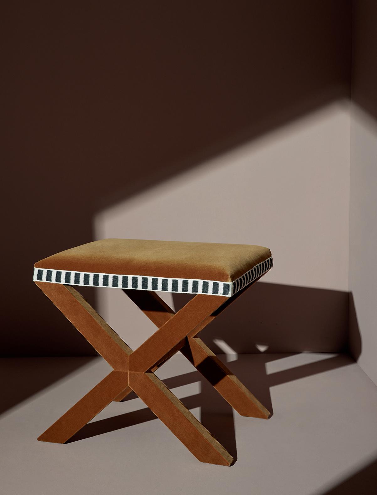 Costellini Ottoman Olive Stripe Linen $395 | Rioja Velvet $395