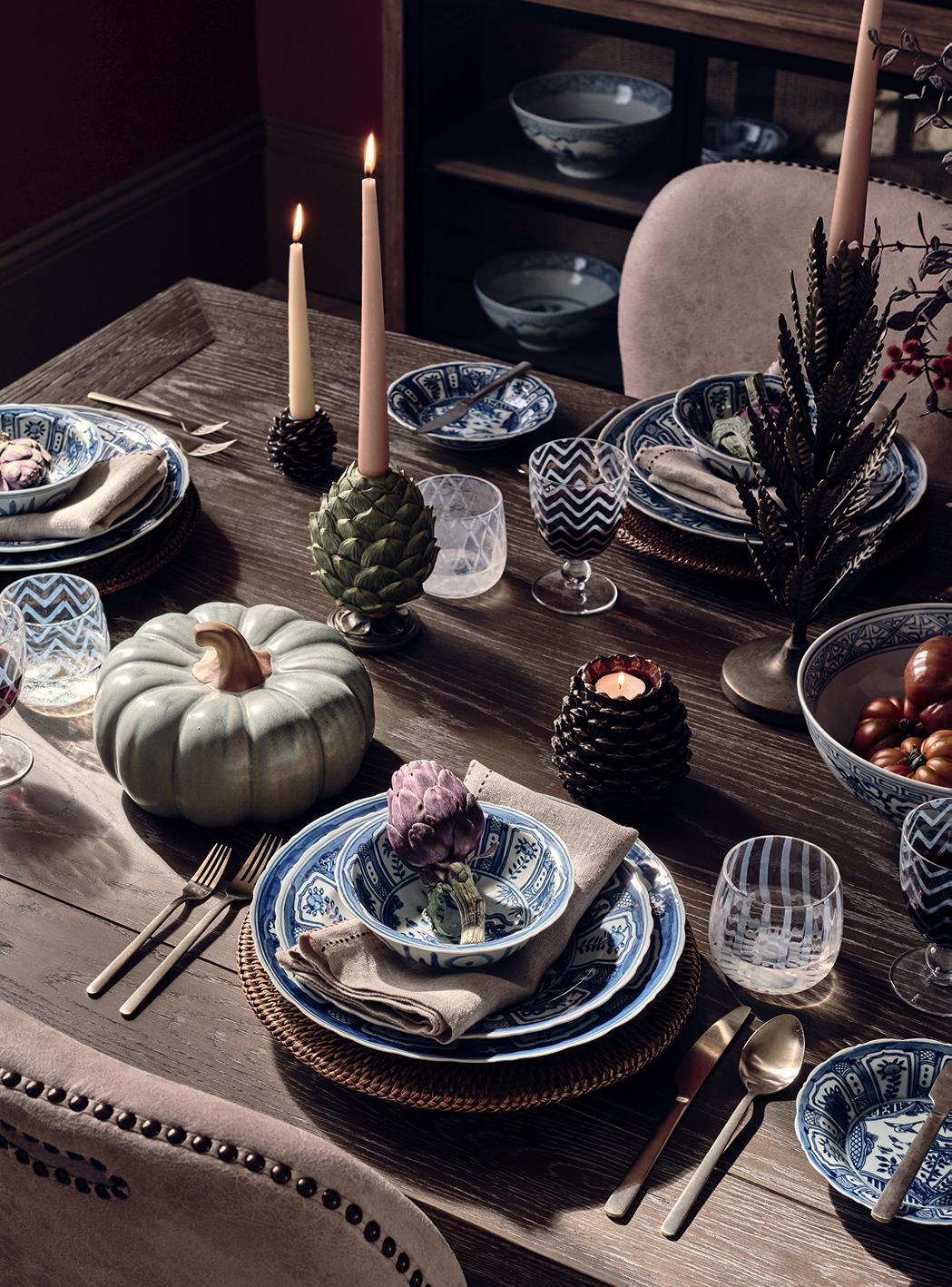 To brighten darkening days, we invite you to uncover Thanksgiving tablescaping ideas (p.18), count the rainbow of upholstery hues available in our custom furniture collection, Tailored by OKA (p.34), and enjoy an edit from friend of OKA Wiggy Hindmarch, founder of the travel-inspired womenswear brand Wiggy Kit (p.38). I do hope you find something that perfectly suits you and your home.