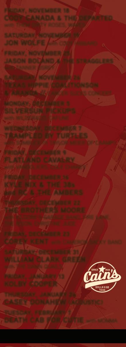 Live music submissions must be received by Oklahoma Gazette no later than noon on Wednesday seven days before the desired publication date. Late submissions will not be included in the listings. Submissions run as space allows, although we strive to make the listings as inclusive as possible. Visit okgazette.com to submit your lisitngs or email listings@okgazette.com. Sorry, but phone submissions cannot be accepted.