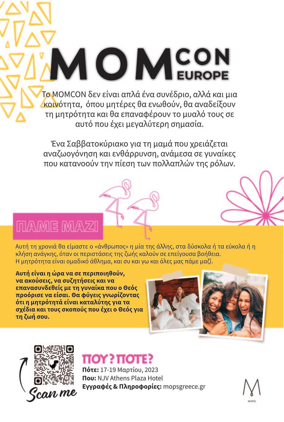 αδικούμαστε... Με το παράδειγμά του ο Ιησούς Χριστός μάς έδειξε πώς να αντιμετωπίζουμε τα γεγονότα και τις καταστάσεις στην καθημερινότητά μας με το δικό του τρόπο και να δίνουμε τις δικές του λύσεις, που δεν συμμορφώνονται με το πνεύμα του κόσμου Εκείνος, πεθαίνοντας πάνω στο σταυρό με μαρτυρικό θάνατο, προσευχόταν για τους σταυρωτές του στον Πατέρα... Ο Θεός ας μας δίνει το δικό του νου και όταν βρισκόμαστε σε δίλημμα και δεν ξέρουμε πώς να φερθούμε, ας αναρωτηθούμε: «Εάν βρισκόταν ο Ιησούς Χριστός στη θέση μας, τι θα έκανε;» και ας του ζητήσουμε τη δύναμη να ενεργήσουμε όπως θα έκανε Αυτός Ας μην ξεχνάμε το «Άγιοι γίνεστε εν πάση διαγωγή». Ας κάνουμε τη διαφορά, μέσα σε έναν κόσμο αμαρτωλό και αδιάφορο για τον Χριστό Ας ζήσουμε με τον τρόπο του Θεού, για το σκοπό του Θεού, που είναι η σωτηρία του ανθρώπου. Με τη νέα ζωή που μας δίνει, ας γίνουμε συνεργάτες δικοί του, εξαγγέλλοντας τις δικές του αρετές… n ΦΕΒΡΟΥΑΡΙΟΣ 2023 | 51
