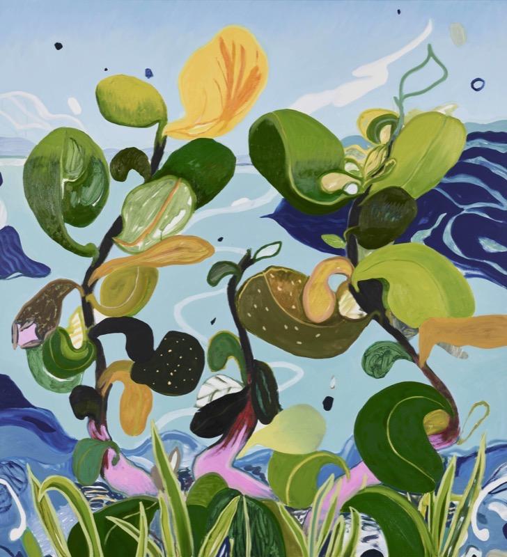 Young suggests that his painBngs consider “endless iteraBons of growth over Bme, perhaps in the same locaBon and ecosystem.” In these imaginary landscapes brimming with Bmeless trees and otherworldly plants set in watery surrounds, it’s hard to know whether we’re witnessing scenes from the future or the past. However, their dynamic character and enigmaBc qualiBes lend weight to the idea that they exist in a state of flux.