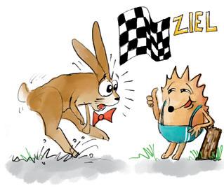 Seite 57: Die Schildkröte und der Hase. Aus: Aesop: Fabeln (projektgutenberg.org) (24. 1. 2023)