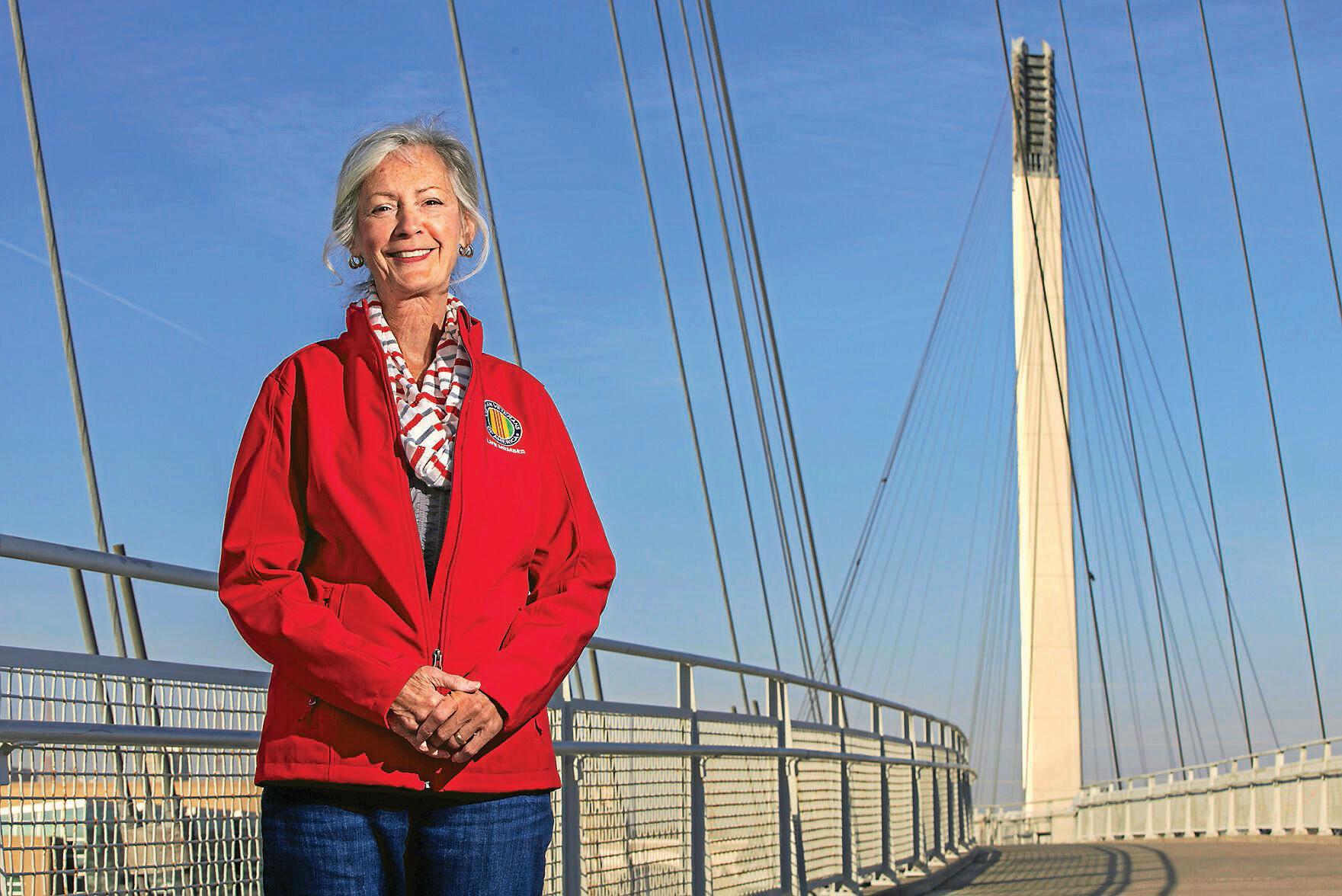 dottie barickman of Council bluffs, a u.S. air Force veteran and national director-at-large of the vietnam veterans of america, poses for a portrait on the bob Kerrey Pedestrian bridge.