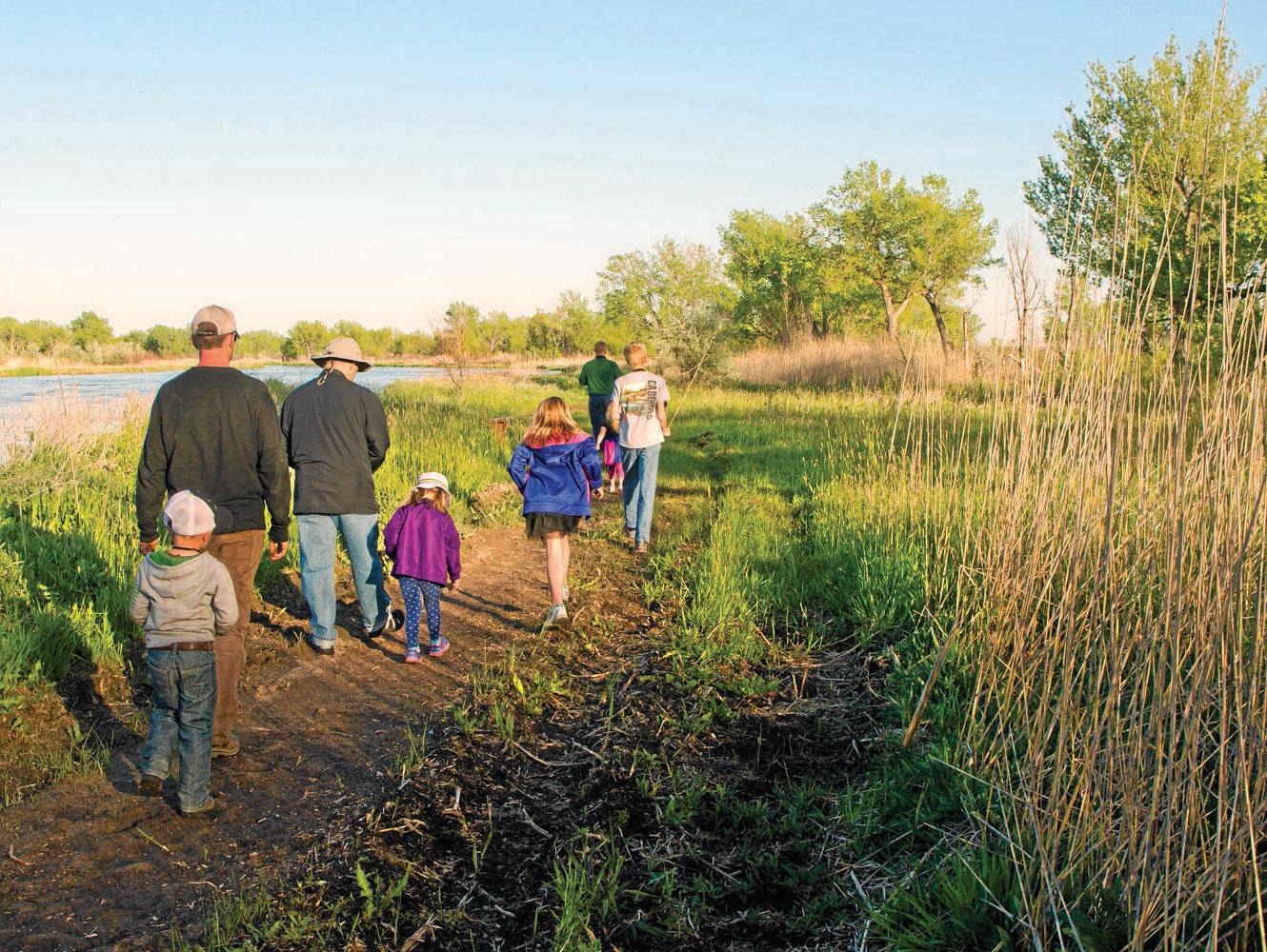 Known as the site where James Butler “Wild Bill” Hickok began his gun ghting career, Rock Creek Station features 6 miles of multiuse hiking trails that wind through beautiful native grasses and wooded areas. From the trail, you can view wagon ruts from westward travelers and reconstructed buildings at this former stagecoach and Pony Express station. Those curious to learn more can stop in the visitor center to see what Rock Creek Station was like during its heyday. The parks’ trails are mostly easy walking, and those who bring their horses can use an equestrian campground at the nearby Rock Creek Station State Recreation Area.