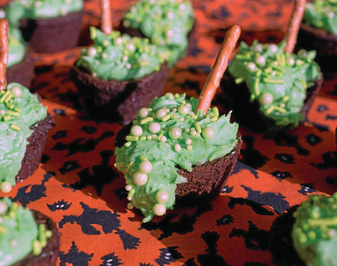 8. Add a pretzel stick to each cauldron as a stir spoon.