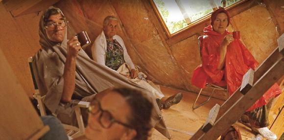 In 1976 we built this cabin at our land (no electricity). In 1977 it was struck by a prairie twister, knocked off its foundations and rolled down the hill. Definitely a temporary building by an architect who eventually learned how to fasten a building to its foundations.