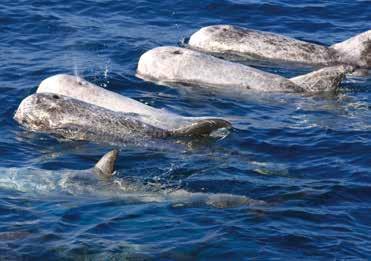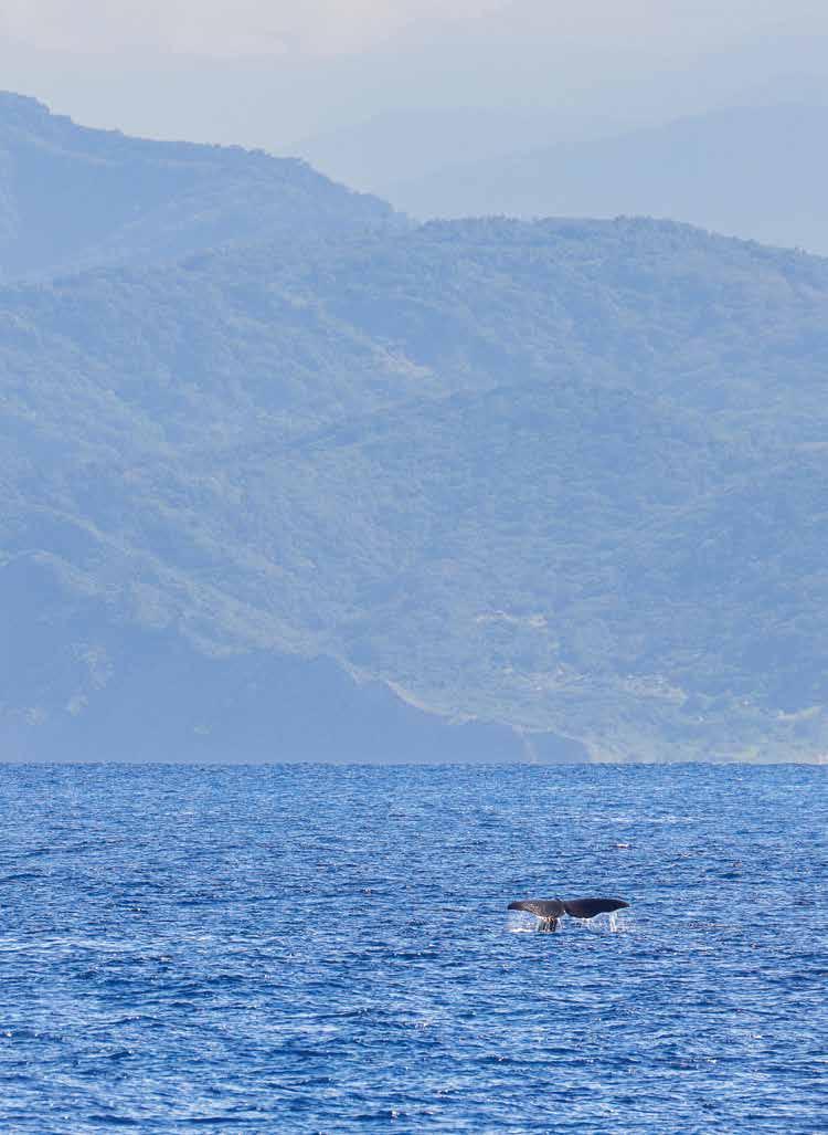 如同大家知曉黑面琵鷺 、 紅尾伯勞每年都會遷徙至台灣一樣 , 許多鯨豚種類也 會在不同的時間點回到台灣東部這片湛藍大海 , 其中有許多被辨識 、 被紀錄 10 年以上 , 甚至超過 20 個年頭的那一隻大型鯨 , 或者是那一隻海豚個體;像 是被紀錄到從幼鯨成長為青少年的虎鯨個體 , 還有在黑潮海洋文教基金會持續 多年的調查紀錄中 , 被命名為 「 來 」 的花紋 ( 瑞氏 ) 海豚 。 而抹香鯨 花小 清也是如此這般的每年夏天出現在花蓮海域 , 在海岸山脈的跟前舉尾下潛 , 且 時不時被出海的大家所紀錄到 。 以大海為家的牠們 , 依循著遠古演化至今的生物習性 , 年復一年洄游至這個島 嶼的周邊 。 生活於島嶼上的人們 , 殷切期盼能夠在出海的過程中 , 遭遇到這些 認識多年的老朋友們 。 兩種生活於不同維度的生物類群 , 同樣生活在台灣這個 島嶼 , 也因為大海 , 而串連在一起 。