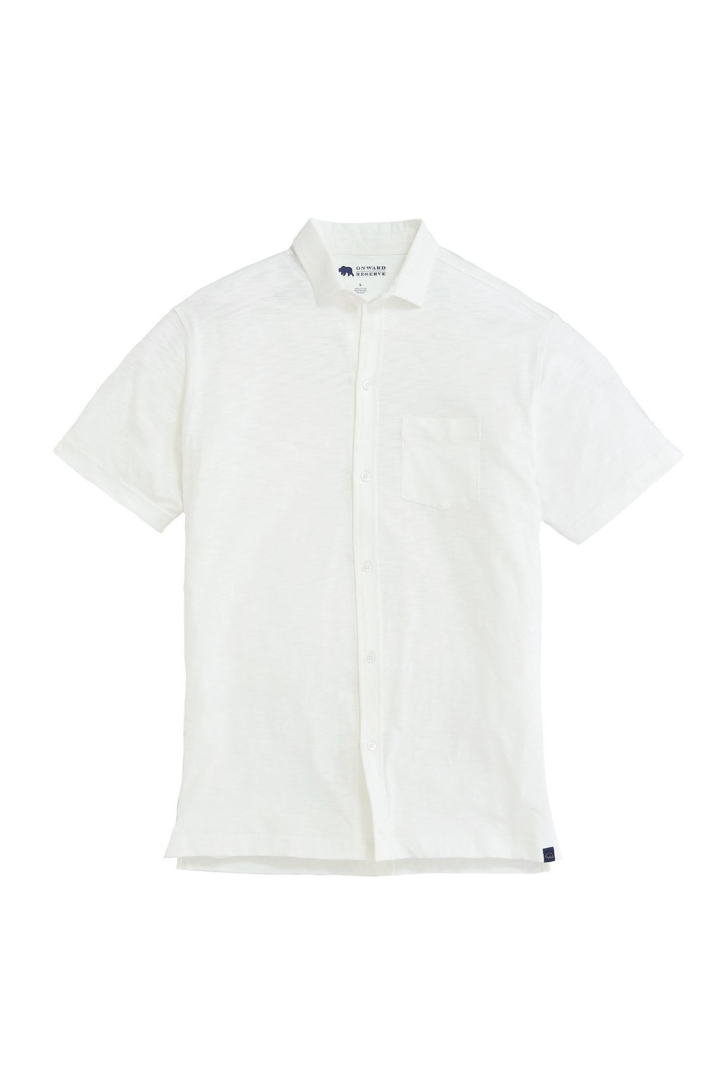 Full button placket. Textured slub cotton. Sizes S-XXL.