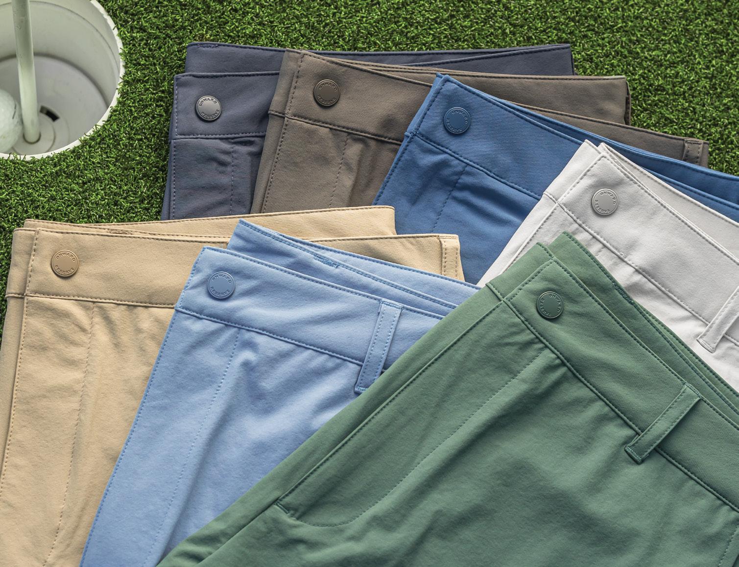 True performance five pocket golf pant. Moisture wicking. Ultra lightweight. Matte tonal snap closure. Performance label.
