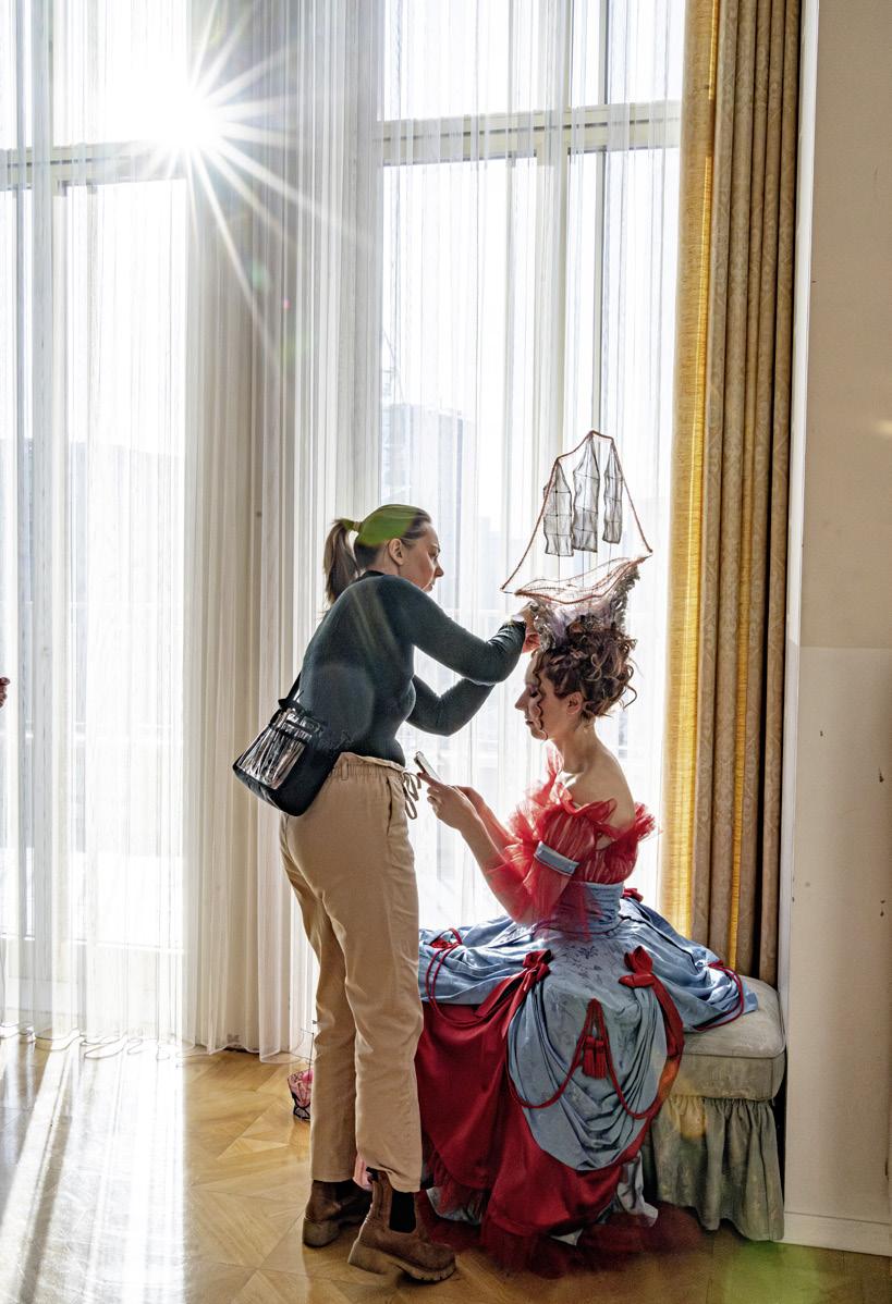 Für alle Kolleg:innen aus den Kostümwerkstätten ist es ein sehr aufregender Moment, das komplette Kostümbild zum ersten Mal im Zusammenspiel mit dem Bühnenbild zu sehen.