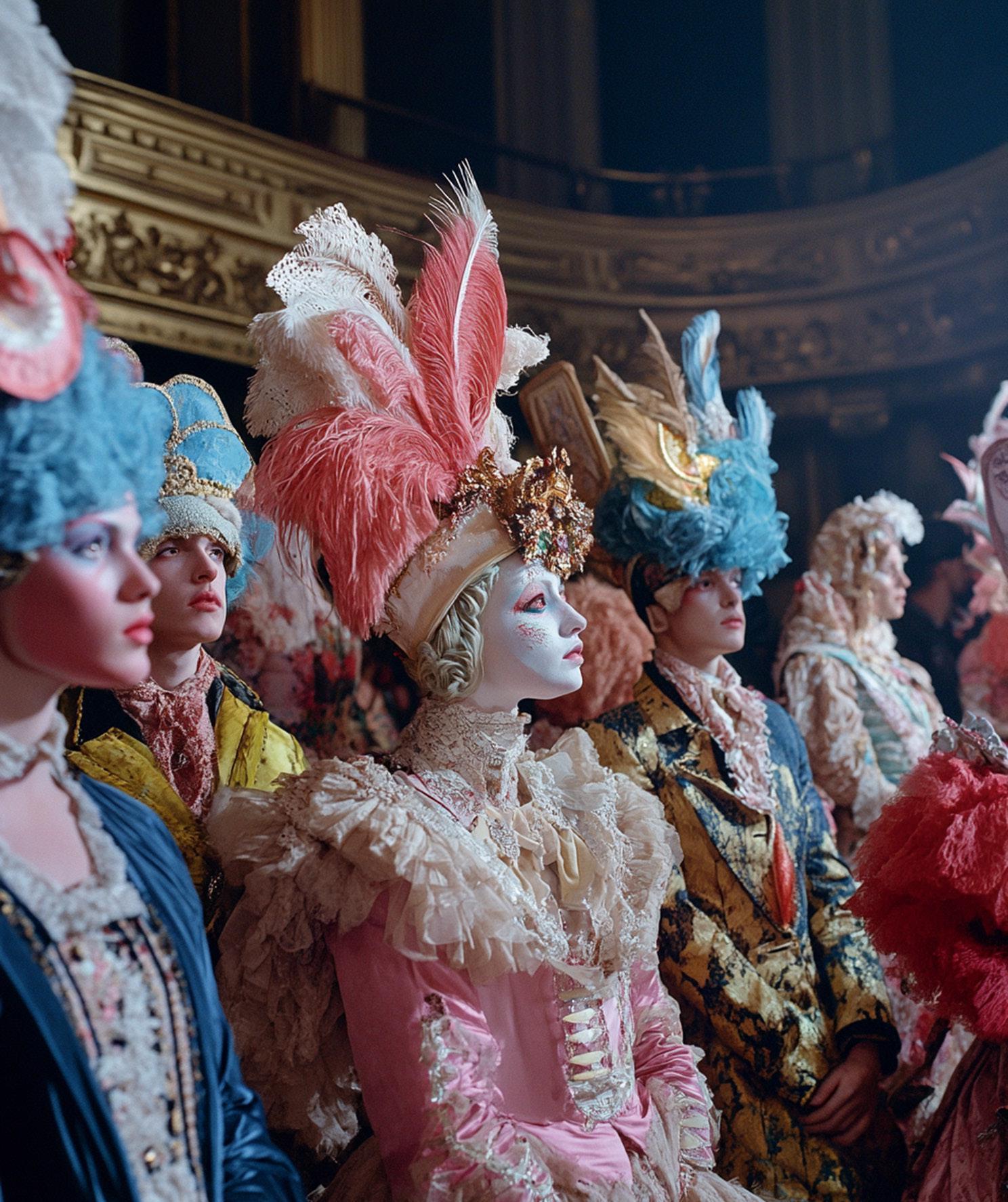 Jeden Abend entstehen neue Figuren, die Maske wird frisch aufgetragen, die Perücken werden aufgesetzt. Während heute verbotene Liebe und Revolution auf dem Programm stehen, spitzt sich schon morgen die Intrige am Hofe zu einem hinterhältigen Giftmord zu. Von der Höllenfahrt zum Champagnerfest!