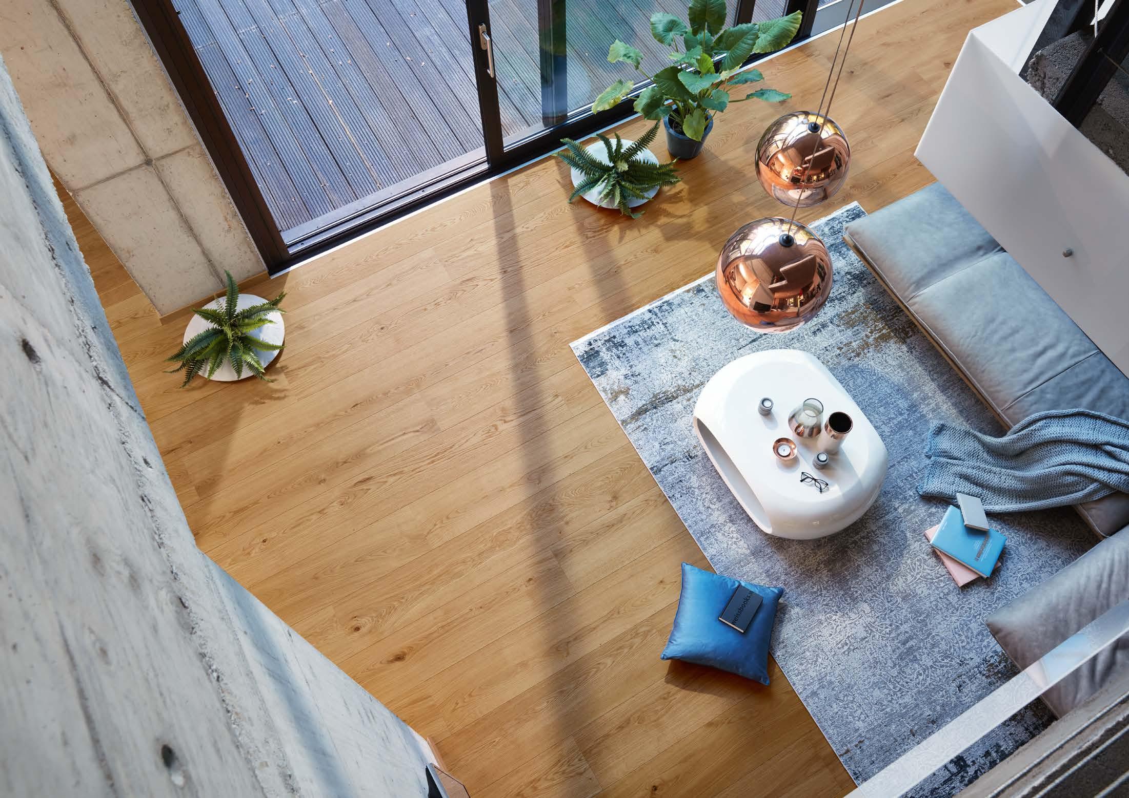 Lindura hat auch bei schwimmender Verlegung auf einer Warmwasser Fuß bodenheizung einen sehr geringen Wärmedurchlass widerstand (0,084 m²K/W; im Verbund mit der Dämm unterlage MEISTER Silence 25 DB). Das bedeutet: Die Wärme wird nicht vom Boden gedämmt, sondern gelangt schnell und mit wenig Verlust ins Innere des Raumes. Lindura wird ausschließ lich PEFC zertifiziertes Holz eingesetzt. seines