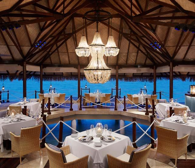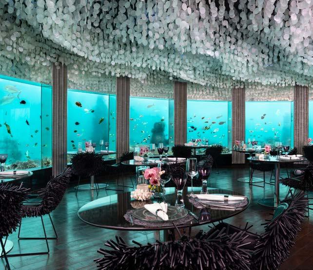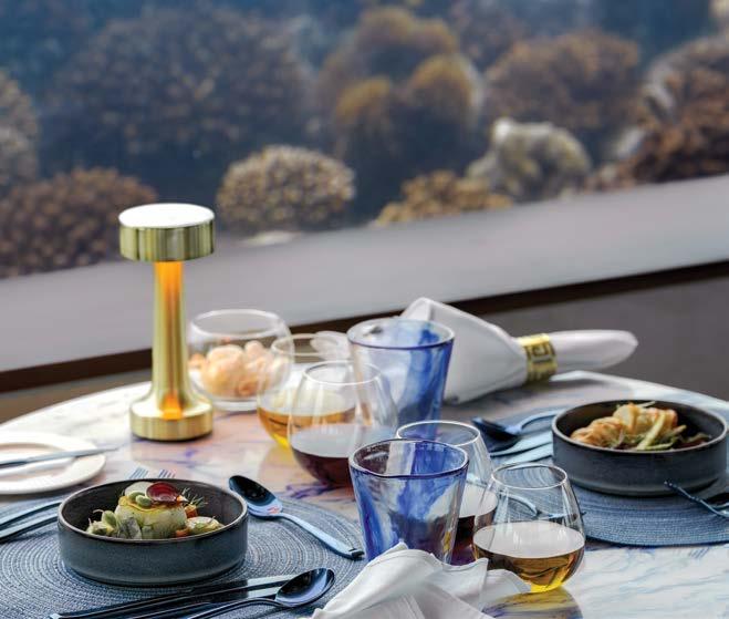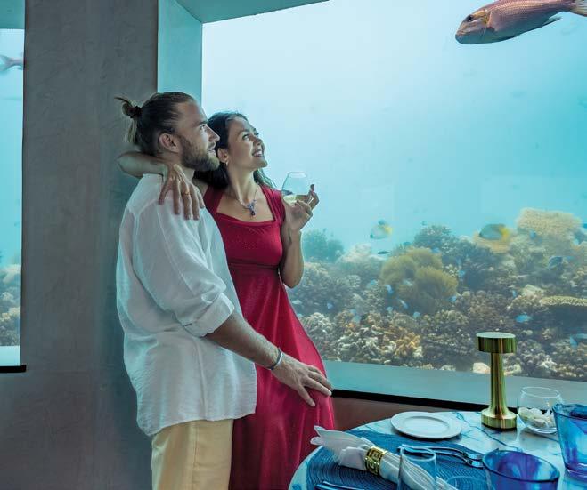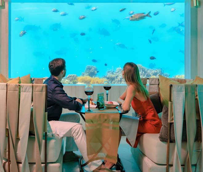 A treasure trove of rare vintages deep below the sea. The Maldives’ first underground wine cellar. Sample exquisite tastings and sixcourse gourmet dinners in a one-of-a-kind space.
