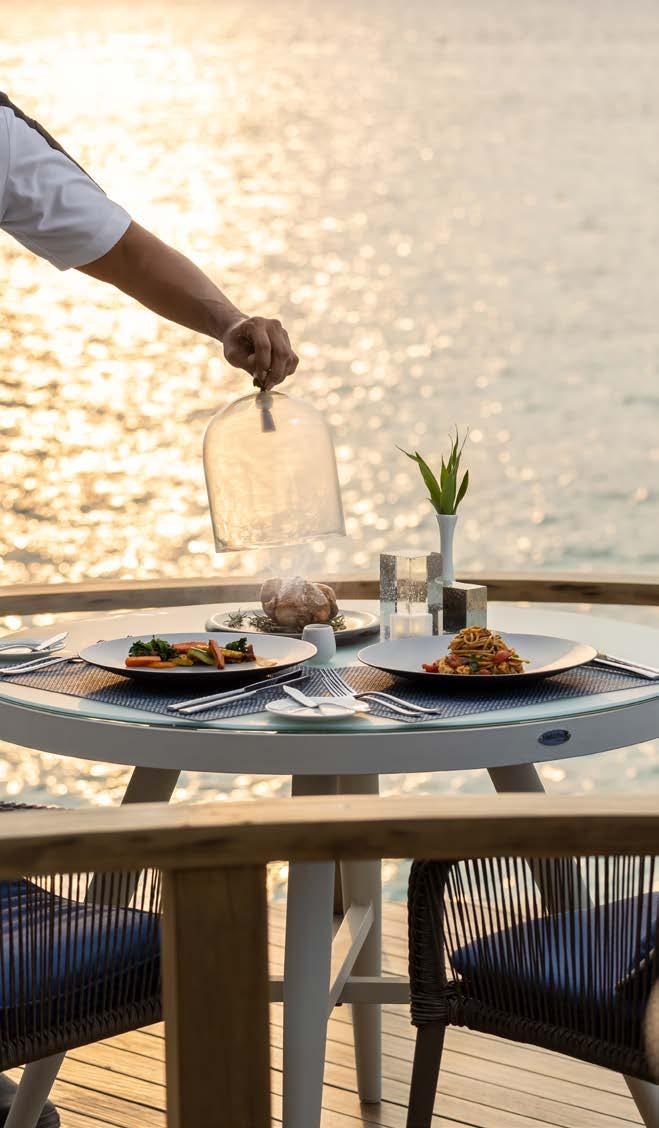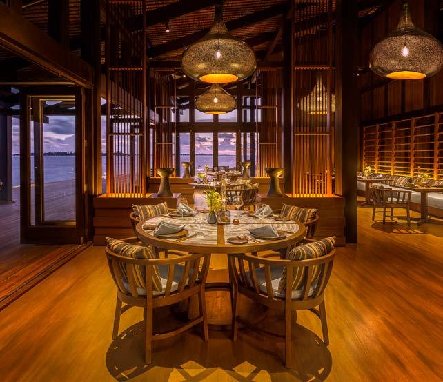 Savour world-class Pan-Asian cuisine with a modern twist at this overwater restaurant, featuring dishes from Indonesia, Japan, Korea, Thailand, and Vietnam. Enjoy stunning Maldivian sunsets as the backdrop.