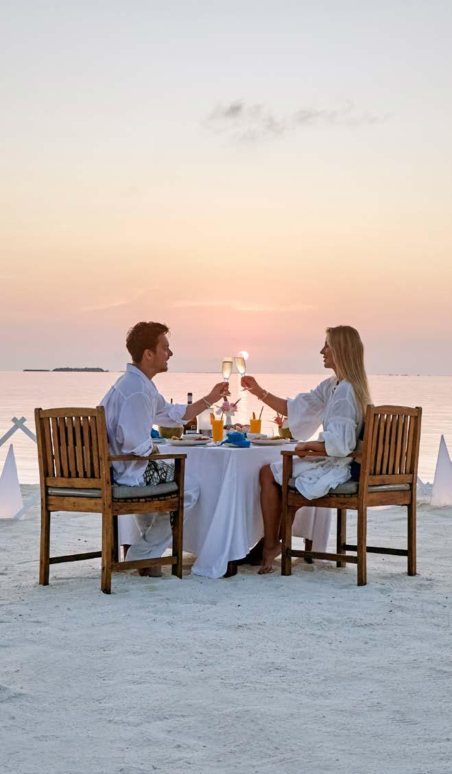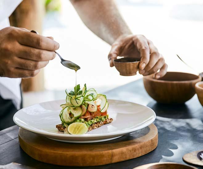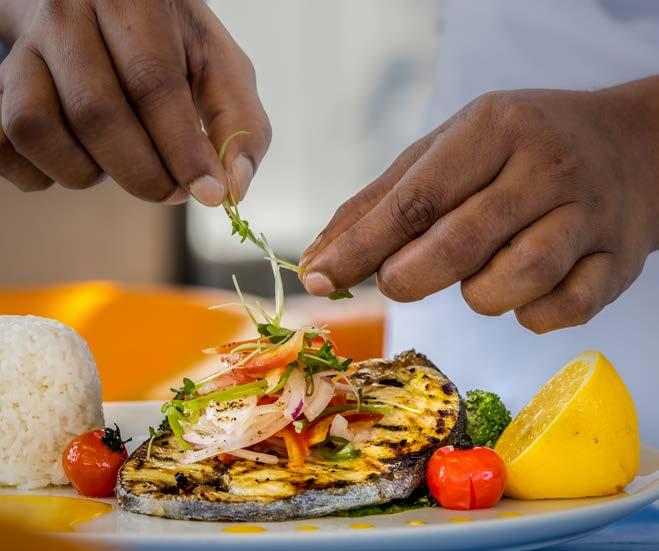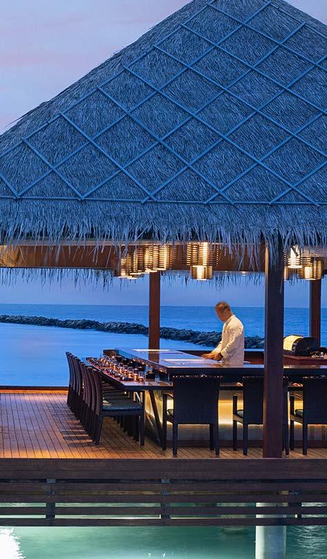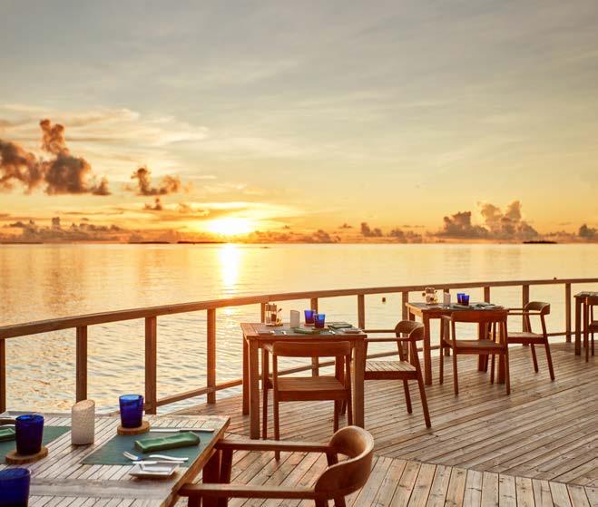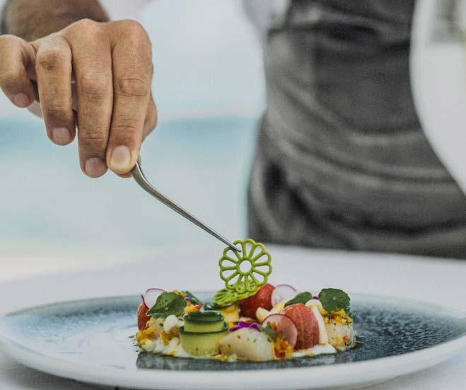 The culinary scene in the Maldives is ever-evolving, blending classic techniques with modern twists. So, you can try classic dishes with an exciting new spin! No matter where your taste buds take you—traditional Maldivian feasts, global flavours, or oneof-a-kind dining experiences—the Maldives promises a culinary adventure as unforgettable as its stunning scenery.