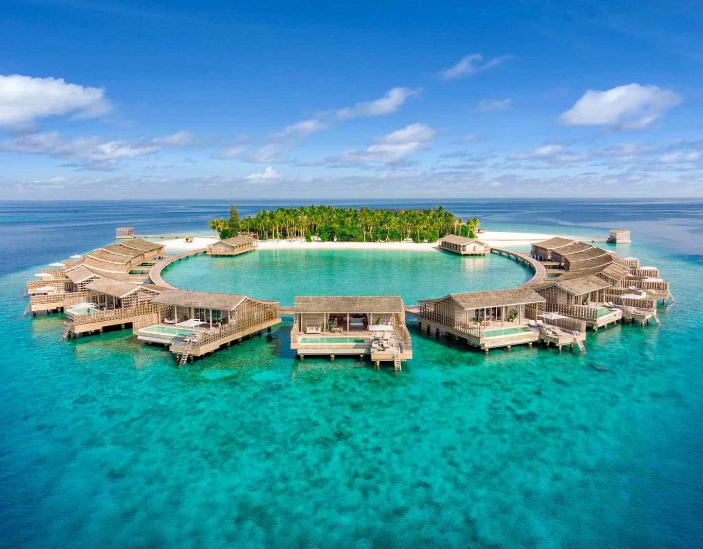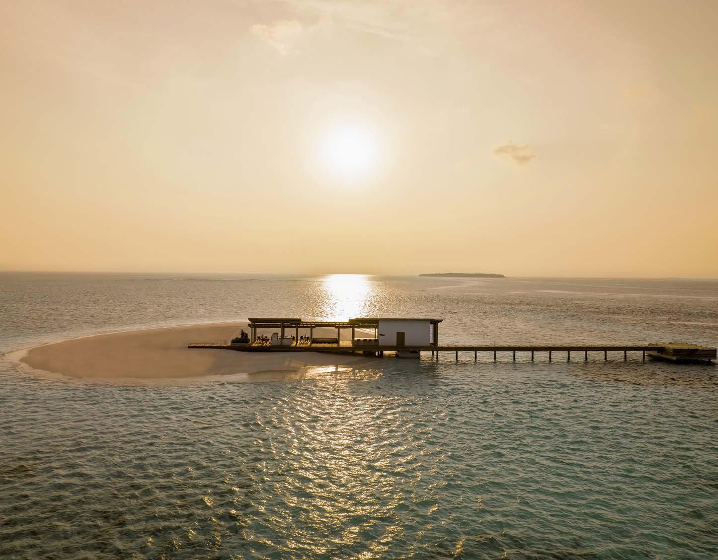 Beru Bar, an overwater club with a see-through dance floor, offers Izakaya dishes, sashimi, nigiri, and maki. Savor craft cocktails while watching stunning sunsets and dance the night away under the Maldives’ largest disco ball.
