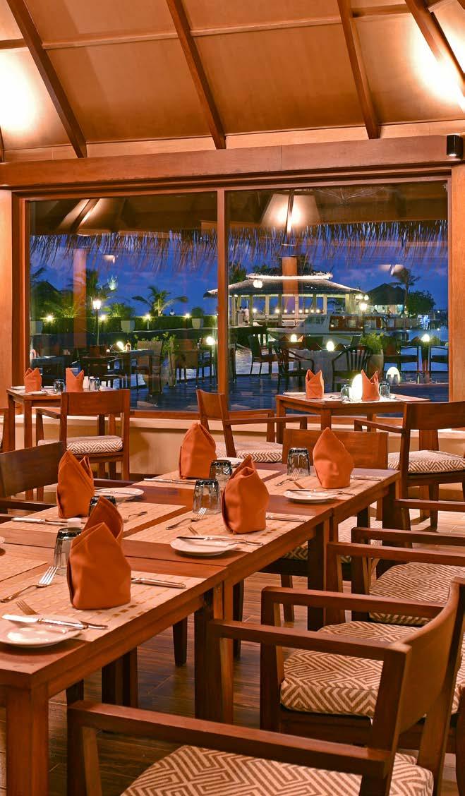 Banyan Restaurant offers a scintillating buffet with a variety of traditional Maldivian and western cuisines. Enjoy eye-catching performances in the action kitchen and a splendid selection of wines and beverages to complement your meal.