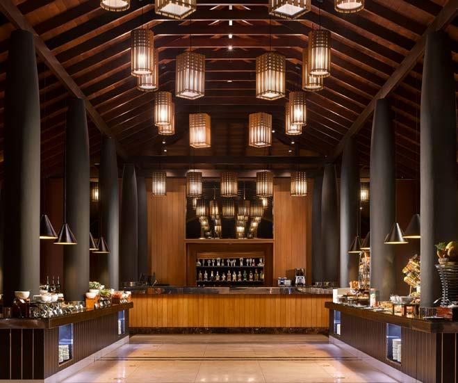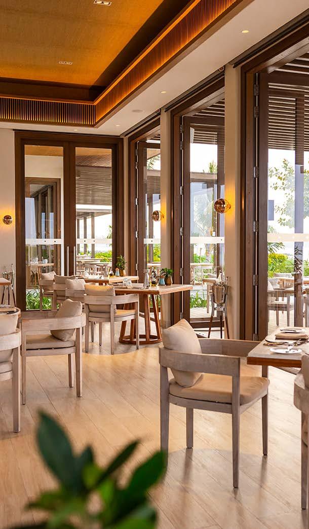 A tranquil, bright, and airy dining outlet by the beach to start the day with luxurious live cooking presented innovatively for breakfast or an inspired evening affair. Experience nourishing flavors and interactive presentation-inspired dishes accented with tropical tones. Amaany International