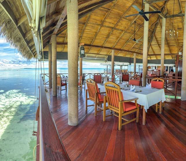 Elevate your dining experience at our iconic overwater restaurant, poised gracefully above the tranquil lagoon.