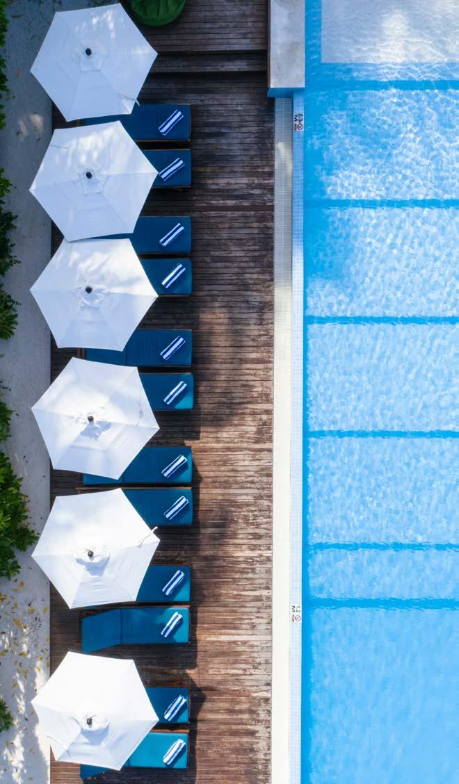 Indulge in cocktails and shakes served poolside, accompanied by ambient tunes from morning till night. Enjoy live performances by a violinist and DJ sunset sessions for a perfect day by the pool.
