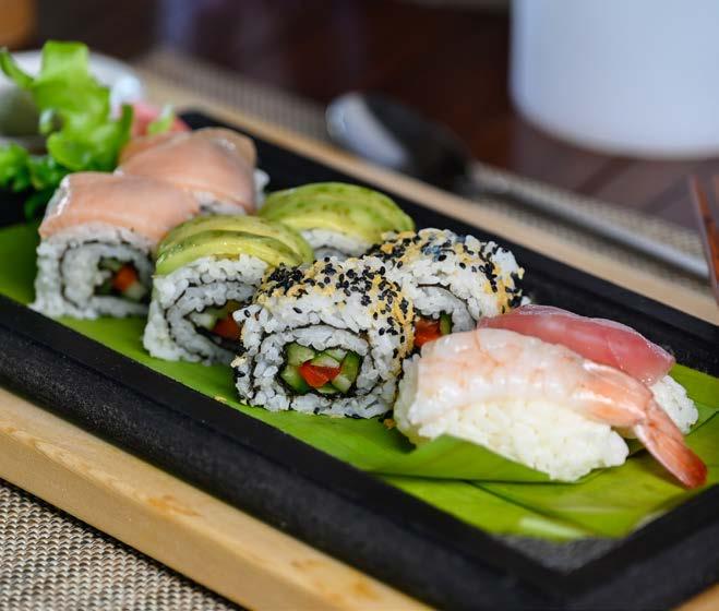 signature restaurant features tables poised on the overwater deck to behold currents as fish dart by while you discover our Japanese cuisine, fresh sushi and sashimi: the epitome of Japanese fine dining.