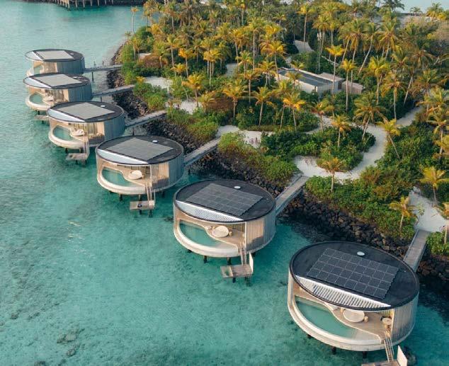 The conversion of the loan became feasible after achieving the EDGE (Excellence in Design for Greater Efficiencies) Advanced Certifications, which demonstrates that the resort is prepared for zero carbon emissions. In a departure from the conventional thatched roof structures, which are prevalent in the Maldives, the villas and other amenities at Fari Islands have flat roofs, enabling the instalment of solar panels. Some of the amenities at Fari Islands have now become 100% solar-powered. Pontiac is exploring more renewable energy solutions.