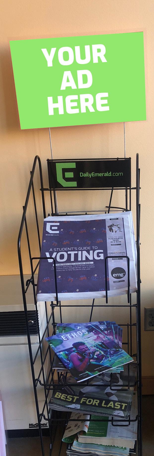 Provide us with a complete set of ads and we’ll place them on our distribution boxes across campus and in Eugene