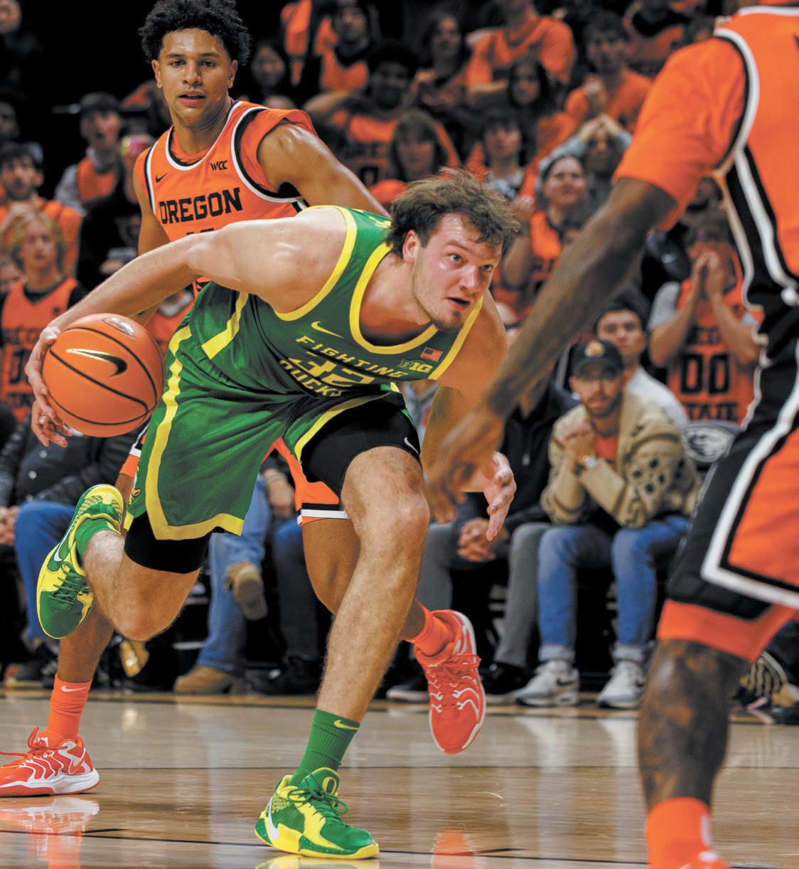 Oregon center Nate Bittle is the Ducks’ newest ranged weapon