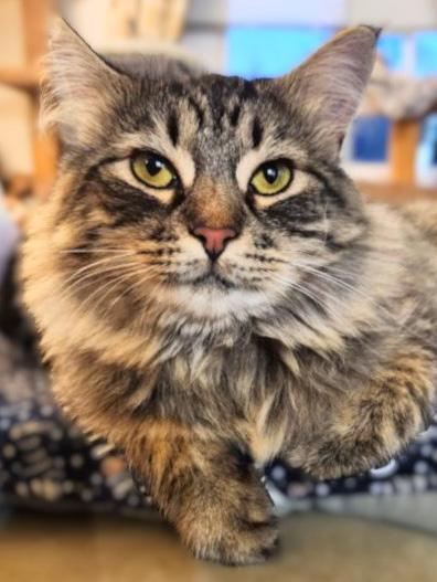 The Cat Rescue & Adoption Network presents CEE CEE , a majestic long-haired brown tabby female adult kitty with a lion’s mane, estimated to be about 7 to 8 years old. She is very sweet, playful, and gentle. She politely asks for attention when she wants it and has a uniquely soft, gentle meow. She takes a bit of time to warm up, but your patience will be rewarded with affection once she realizes she can trust you. She loves other cats, and their presence helps put her more at ease. Once she’s comfortable, she will come find you to ask for pets and tell you all about her day. She has been spayed, vaccinated, microchipped, and is negative for FIV & FeLV. To meet Cee Cee in foster care, please call 541-225-4955 option 1, or visit our website at CatRescues.org
