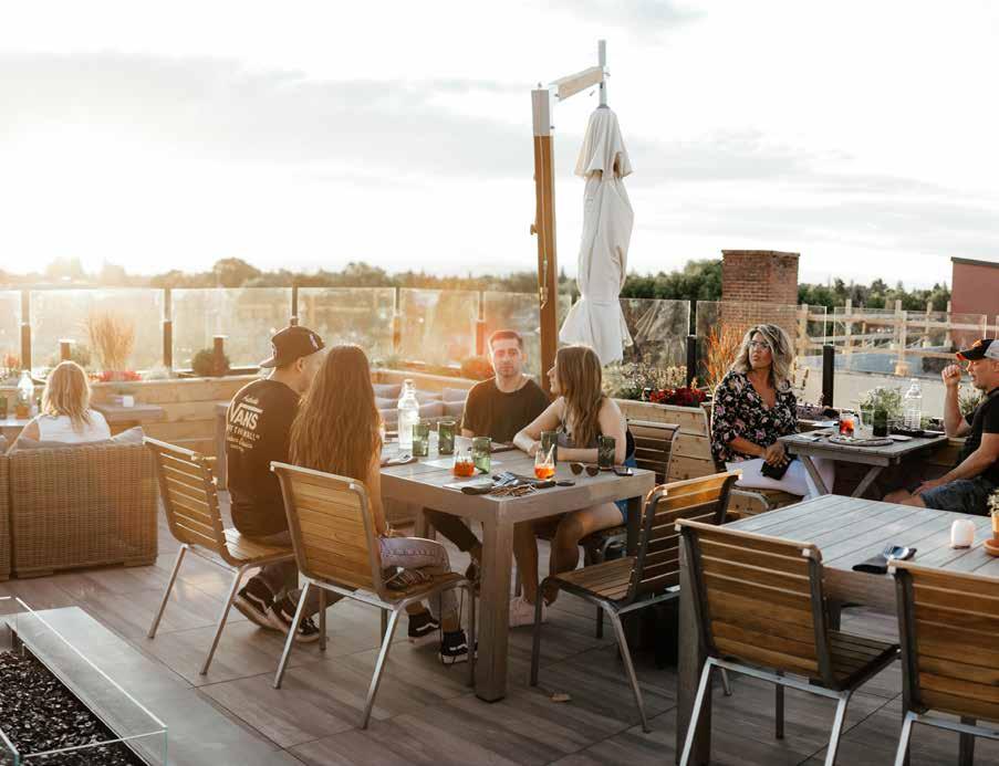 matcha and honey, each drink offers local flavors that make for bright and effervescent summer patio cocktails. Additionally, The Rooftop offers an array of thoughtful nonalcoholic refreshments, such as the 6 am at the Farmer’s Market, a herbaceous spritzer blending fresh herbs, green tea and house-made celery shrub. Since its inception, The Rooftop has become a gathering place for Central Oregonians. “It provides a space for the community to gather and celebrate,” Colvin reflected. From hosting weddings to offering a space for locals and travelers alike to unwind and connect, The Rooftop has become a cornerstone of the area—with a bird’s eye view.