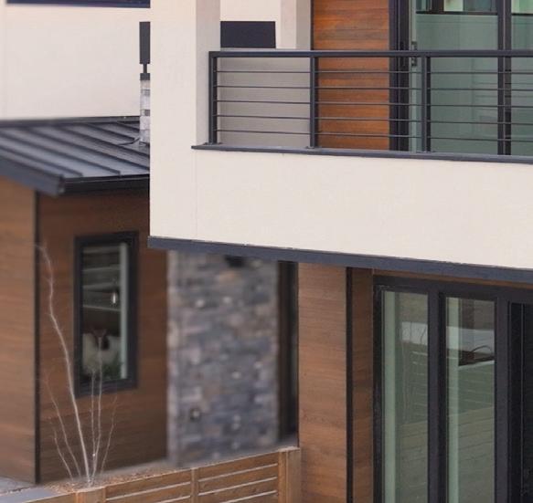 The mews are Northwest contemporary style homes that offer ample natural light, are approximately 1,600 square feet and include two-car garages. Kitchens feature high quality appliances, custom cabinetry, and solid wood fl oors in an effi cient layout. Ten-foot ceilings on the main fl oor and vaulted ceilings on the second fl oor, along with large windows that look out over green space, belie the compact nature of the homes and bring a feeling of spaciousness. Each home features two patios on the ground level, a balcony upstairs off the