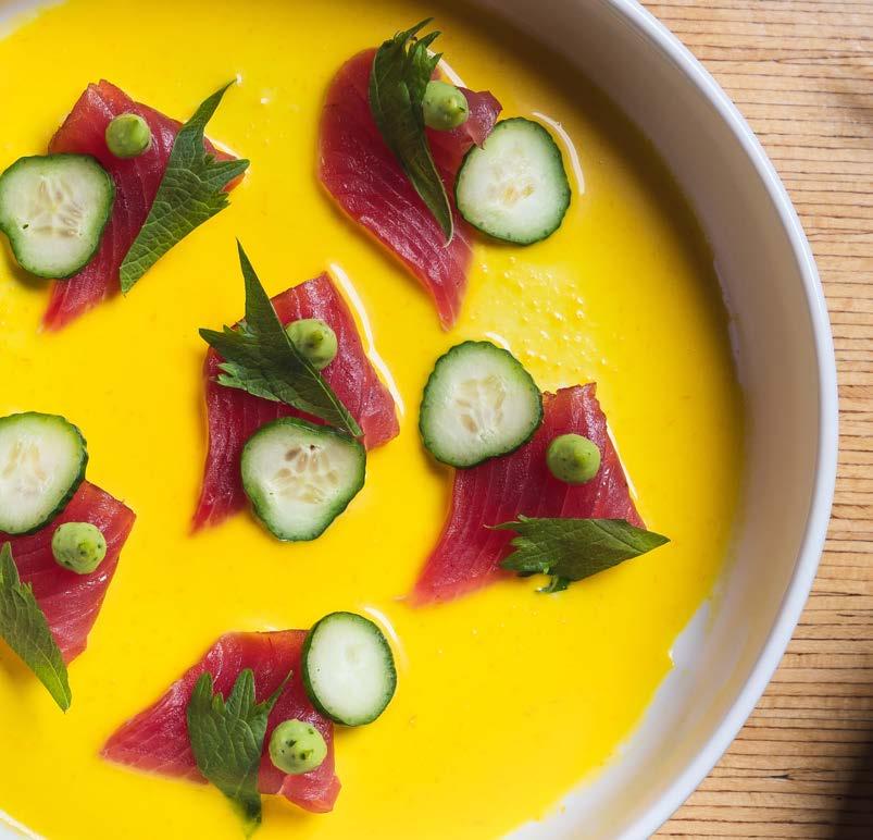 Oregon peach, roasted beets, marjoram, hazelnut, nasturtium and Dressing Royale