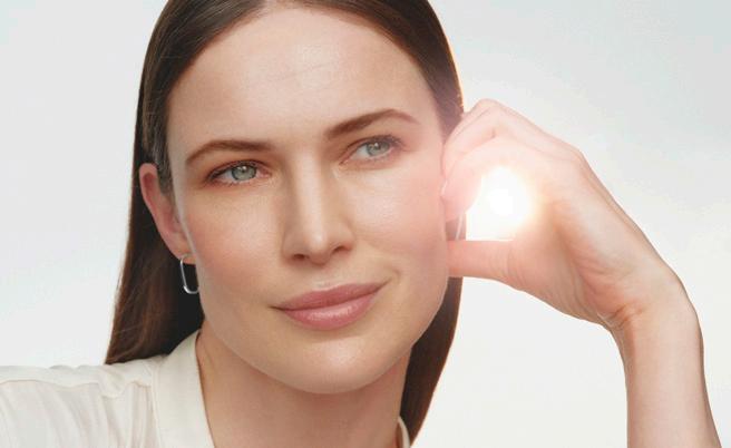 Para unificar el tono facial, aplica una base sedosa y luminosa como Eternal Glow y luego, coloca nuestra nueva Tinta Bronceadora debajo de los pómulos, contorno de frente, nariz y barbilla. ¡También puedes usarla en el cuerpo, difuminando con la brocha Bronceadora!