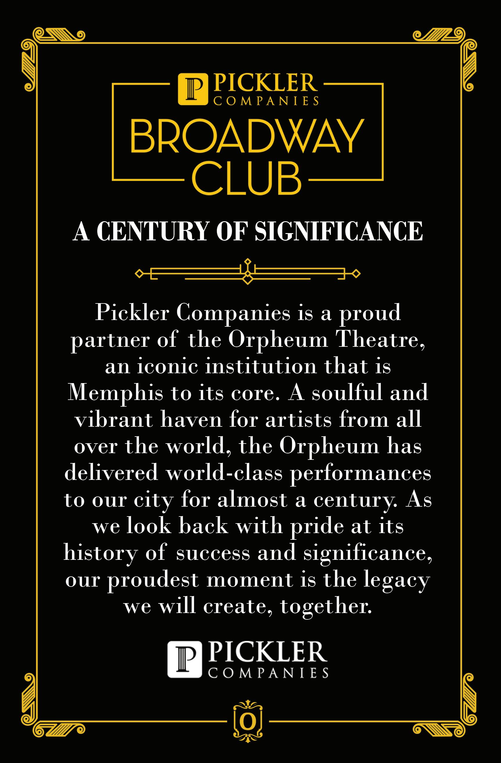 The Orpheum Theatre Group would like to recognize the following Season Ticket Holders who have subscribed to the Orpheum’s Broadway Series every year for the past 20 or more years! These dedicated subscribers are the core of our annual patrons and allow us to continue to bring the best of Broadway to Memphis year after year. Please join the Orpheum in thanking the members of THE CLUB OF 20 for their loyalty and enthusiasm for our historic theatre.