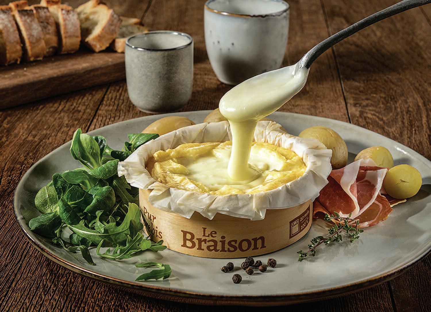 Le Braison is best served on a warming platter to keep it gooey, but it